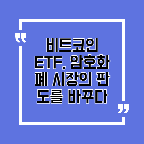 따라서 개인 투자자는 비트코인 ETF를 활용하여 간접 투자에 접근하거나, 비트코인 ETF 관련 종목(운용사 주식 등)을 통한 2차 수혜 전략도 고려해볼 수 있습니다.